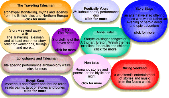 Catspaw Authentic Entertainment - v ery special entertainment for special events. Check out our workshops - especially the range of story workshops. Or make your party an event to go down in history with one of our shows from the Dark Ages, Medieval, Viking, Elizabethan periods. Our wedding listings offer something a little different for stag and hen and wedding entertainments. | ||